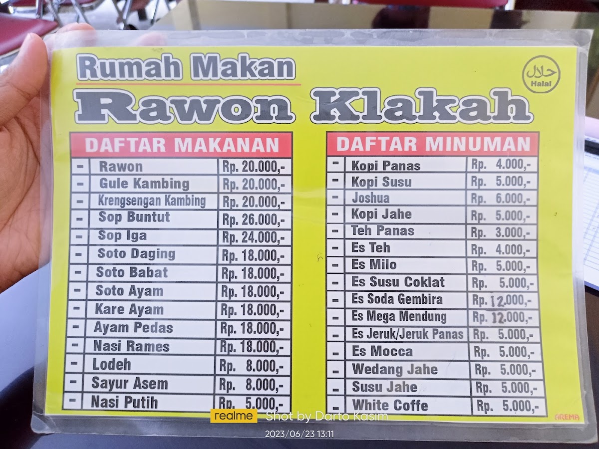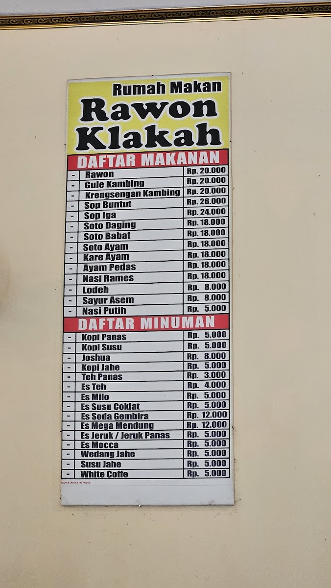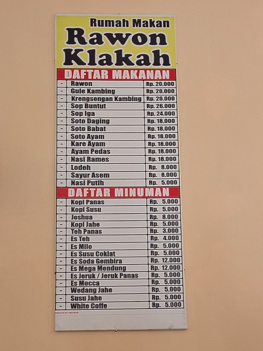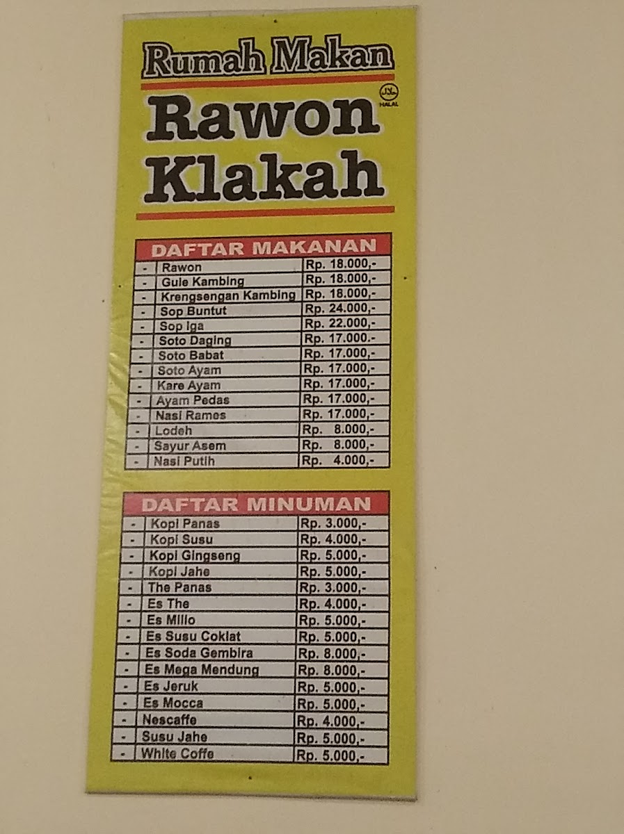 Rawon Klakah Menu